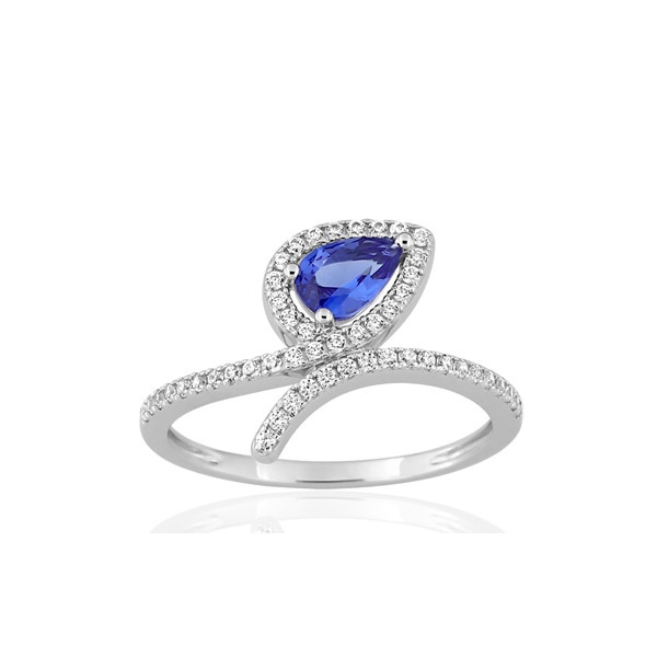 Saphir: de Ceylan 6 x 4 mm forme poire à facettes serti trois griffes